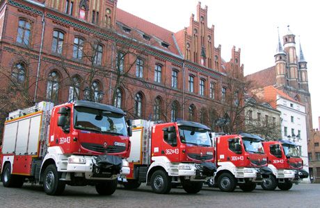 Όχι ένα αλλά εννέα Renault Kerax εντάχθηκαν στο σώμα της πολωνικής Πυροσβεστικής Υπηρεσίας με τη συγχρηματοδότηση του Ευρωπαϊκού Ταμείου Περιφερειακής Ανάπτυξης. Τα 18τονα οχήματα εξοπλίζονται με κινητήρα DXi11 απόδοσης 430Ps και συνδυάζονται με αυτόματο κιβώτιο ταχυτήτων, με την κίνηση να μεταδίδεται σε όλους τους τροχούς. Ενισχυμένο είναι το σασί και οι άξονες στην προκειμένη περίπτωση για τη μεταφορά μεγαλύτερων φορτίων, ενώ το μεταξόνιο είναι 4.495mm. Η τριθέσια καμπίνα είναι εξοπλισμένη με όλα τα απαραίτητα για μια άμεση επέμβαση, ενώ ήδη το πλήρωμα είναι ιδιαίτερα ενθουσιασμένο με τις δυνατότητες και τις τεχνολογίες των Kerax. Αυτή η ενέργεια, η απόκτηση εννέα πυροσβεστικών οχημάτων, εντάσσεται στο πρόγραμμα πρόληψης και άμεσης επέμβασης τροχαίων ατυχημάτων, μια και η Πολωνία είναι μία από τις χώρες που παρουσιάζει αυξημένες τιμές σε ατυχήματα.