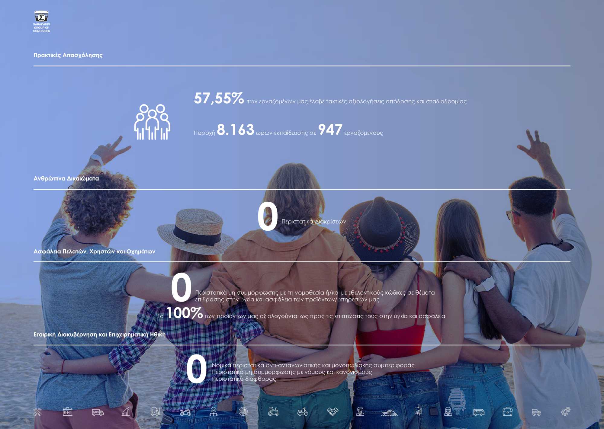 Η Μαρία Ξυτάκη, Group Corporate Affairs, Communications and ESG Senior Manager ανέφερε: «Ο συνεχής σεβασμός στις Αρχές, τις Αξίες, τον Σκοπό και την Κληρονομιά του Ομίλου μας αποτελεί την πυξίδα μας προς ένα βιώσιμο μέλλον. Η ολοκλήρωση της Έκθεσης Βιώσιμης Ανάπτυξης 2024 για δεύτερη φορά και χωρίς να τίθεται ακόμα θέμα υποχρεωτικότητας βάσει Ευρωπαϊκής οδηγίας για τον οργανισμό, αποδεικνύει εμπράκτως τη δέσμευσή μας για συνεχή βελτίωση των επιδόσεών μας σε θέματα βιώσιμης ανάπτυξης με στόχο την ευημερία των ανθρώπων μας, της κοινωνίας και των μελλοντικών γενεών. Η Έκθεση Βιώσιμης Ανάπτυξης 2024 αποτελεί την πρώτη έκθεση σε επίπεδο Ομίλου και υπογραμμίζει τη στρατηγική σημασία της βιώσιμης ανάπτυξης σε όλες τις πτυχές των δραστηριοτήτων του οργανισμού.»
