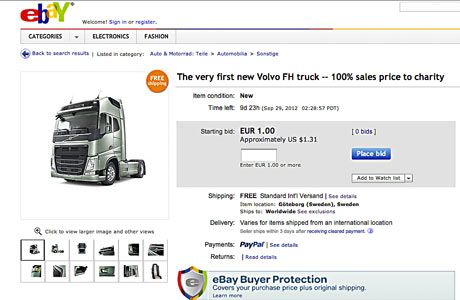 Από χθες, 19 Σεπτεμβρίου, τρέχει άνοιξε στο eBay η δημοπρασία το πρώτο νέο Volvo FH και θα παραμείνει ανοικτή για δέκα ημέρες, για ενδιαφερόμενους από ολόκληρη την Ευρώπη, συμπεριλαμβανομένων της Ρωσίας, της Τουρκίας και του Ισραήλ. Η Volvo Trucks θα δωρίσει τα χρήματα από την πώληση του τράκτορα στον Star for Life, έναν μη-κερδοσκοπικό νοτιοαφρικανικό οργανισμό στόχος του οποίου είναι η μείωση του αριθμού των οροθετικών μαθητών γυμνασίου. Την άνοιξη του 2013, ο πλειοδότης με τη μεγαλύτερη προσφορά, θα προσκληθεί να παραδώσει αυτοπροσώπως αυτό το χρηματικό ποσό σε ειδική εκδήλωση στη Νότιο Αφρική.